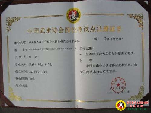 遂宁东武国光太极被接纳为中国武术协会三级单位会员