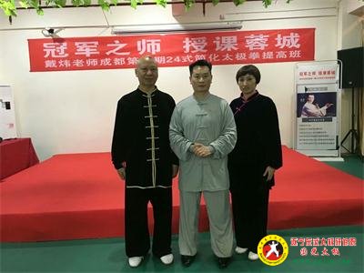 戴炜老师与郭光 2019-01-22 郭光老师的启蒙老师:戴炜老师 郭光与戴炜老师在成都 郭光与戴炜老师在遂宁 郭光和弟子与戴炜老师在成都 国光太极四周年庆戴炜老师和杨继宁老师为郭光授牌“四川省陈式研究会培训中心" 国光太极九周年庆戴炜老师为郭光授牌"四川省陈式太极拳研究会遂宁分会”