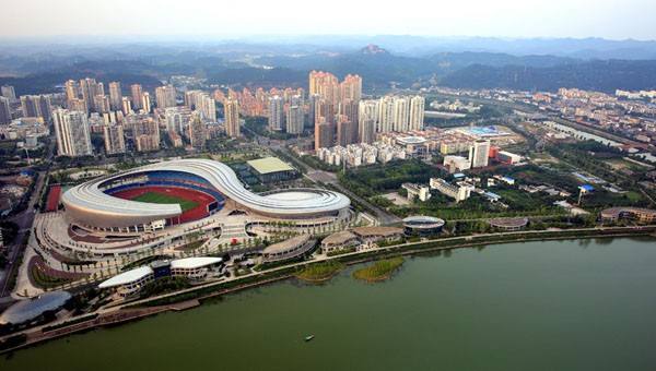 遂宁体育中心是承办四川省第十二届运动会的重要场馆,遂宁东武太极研修院-国光太极座落在遂宁体育中心西区