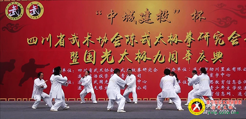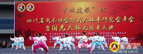 11月25日,由四川省武术协会陈式太极拳研究会、遂宁东涪投资有限责任公司主办,遂宁东武国光太极拳培训中心、遂宁市天缘文化传播有限公司承办,遂宁市励川置业有限公司、遂宁市寰宇中心协办的“中城建投”杯四川省武术协会陈式太极拳研究会年会暨国光太极9周年庆典在四川省遂宁市体育中心体育场隆重举行,其目的是弘扬中华武术,传承太极精华,倡导我运动,我健康,我快乐的健康生活方式。