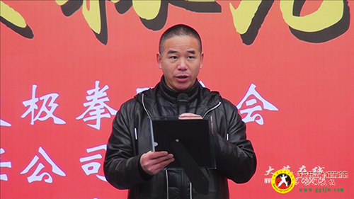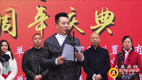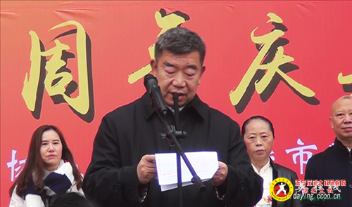 原遂宁市人民政府副市长,市政协副主席赵洪武发表讲话并宣布四川省武术协会陈式太极拳研究会年会暨遂宁分会授牌国光太极9周年庆典开始。