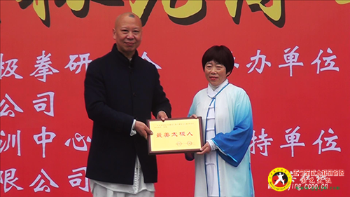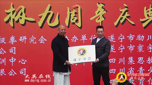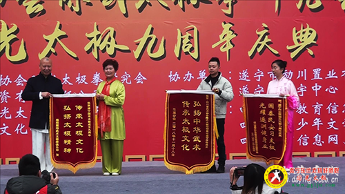 四川省武术协会陈式太极拳研究会会长戴炜为遂宁国光太极授牌