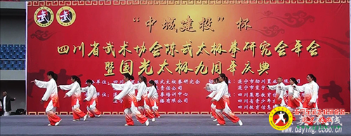 四川省陈式研究会各分会及遂宁各区县太极协会的代表队进行太极拳、太极剑、太极刀等表演。