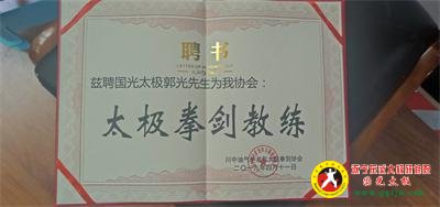 郭光老师受聘于川中油气矿太极拳剑协会教练