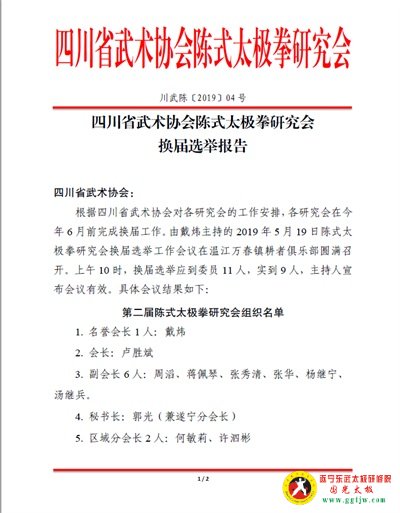 四川省武术协会陈式太极拳研究会换届