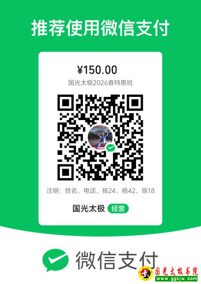 【国光太极白天周课程】为让普通太极拳爱好者能在国光太极学拳,特安排4个月、每周一次、每次2小时150元特惠课程!